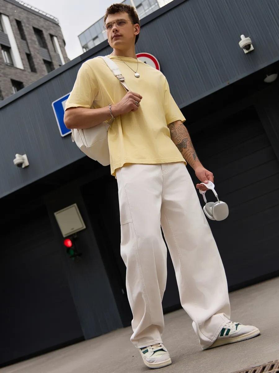 Багги с высокой посадкой - вечная классика родом из 2000-ых. Свободный крой не стесняет движений, а высокая посадка вытягивает силуэт. Высококачественный хлопковый деним, наличие карманов и приятный молочный цвет - главные преимущества этой модели от бренда Fine Joyce.