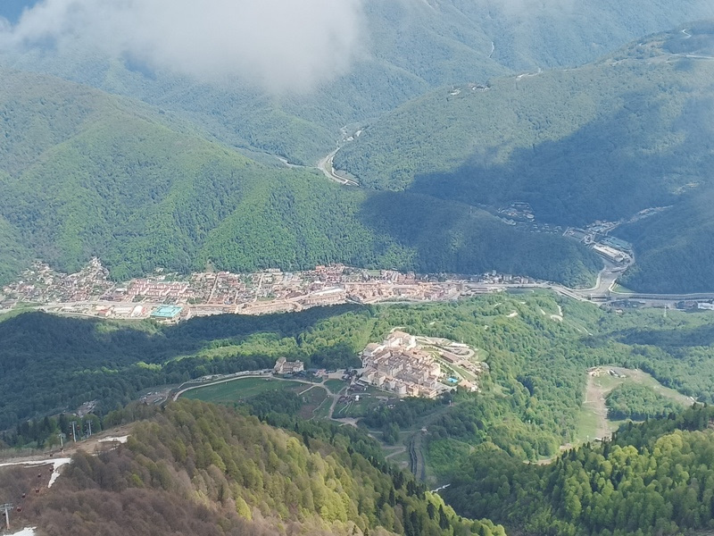 Часть 10: https://dzen.ru/a/aHVp9bELi3FWEwvo?share_to=link 14.05.25. Дождь прекратился, небо чистое, но температура воздуха совсем не курортная. Всего +16°С. Поехали взглянуть на Красную Поляну и Роза Хутор. Симпатичные посёлки. Поднялись по канатной дороге на самый верх до 2200 м. Там середина весны: есть немного снега, но ещё нет зелени. Ценник негуманный – 2750 рублей за человека. Сочинцам и детям дешевле: по 2200 и 1650 рублей соответственно. Здесь жируют работники Сбербанка, … … а здесь простые барыги-спекулянты, каким и я был когда-то. В 13:00 приехали в аэропорт. Сдал машину, попрощался со спутником. У него в 15:00 рейс в Дубай. Теперь я свободен до утра 16 мая. Айда смотреть олимпийское наследие Сочи. Я его ещё толком своими глазами не видел. Только по телевизору. Для ускоренного осмотра олимпийских объектов освоил новый для себя вид транспорта – аккумуляторный самокат. Вот он на переднем плане на фоне спортивного комплекса «Айсберг». Большой спортивный комплекс. Олимпийский ог