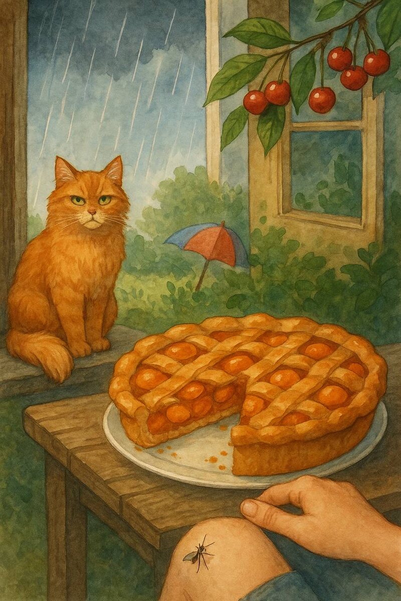 Вот лето - абрикосовый пирог. И треть его уже мы откусили. Соседский кот приходит на порог - пушистый, рыжий. Вредный, но красивый. В свинцовом небе сделалась дыра, и дождик бодро застучал по крыше. Прихлопни на коленке комара. И посмотри, как покраснели вишни. Ты не ворчи, мол, лето без жары. Какое есть - зато насквозь всё наше. Раскрасились в зеленое дворы. Дождю открылись окна нараспашку. Бежим пускать кораблики к реке? Пускай они плывут к далеким странам. Всё это лето - у тебя в руке. Не наслаждаться им - ужасно странно. Раз дождь, достанем яркие зонты. Раз нет жары, порадуйся прохладе. В конце концов, у нас есть я и ты. И наше лето. Что еще нам надо? А надо лето пробовать на вкус. Вдыхать его. Дышать им полной грудью. Пойти на рынок и купить арбуз. Взять удочку и с ней пойти на прудик. Бежать по полю, не жалея ног. Позволить, чтоб причёску сделал ветер. Вот лето - абрикосовый пирог. Как хорошо, что есть еще две трети. @matrasovamalvina