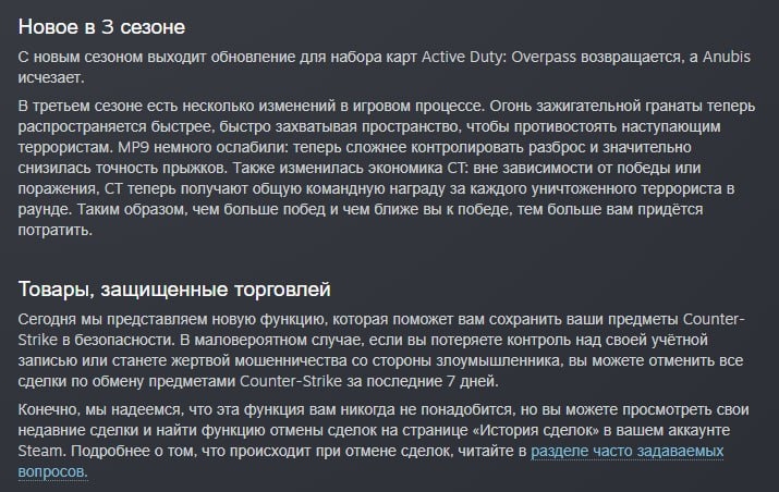 ⚡️Ночью в CS2 вышло огромное обновление среди прочего Overpass сменил Anubis. Главное: Premier Сезон 3 стартовал; Overpass вернули в соревновательный пул; Anubis удалили из активного пула соревновательных карт; Зажигательная граната теперь быстрее разгорается; У MP9 повысили отдачу и сильно занерфили стрельбу в прыжке; КТ теперь получают по $50 за каждого убитого террориста в раунде. Помимо этого Valve добавили отмену трейдов если вас взломают, то можно будет откатить все обмены за последние 7 дней через историю сделок в Steam. CtrlAltDelights- подписаться