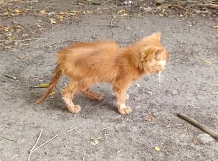 Выйдя на детскую площадку со своими дочерями, Елена увидела, как местная детвора бегает с какой-то ярко рыжей игрушкой. Причём дети то усердно её наглаживали, то пытались накормить и напоить, а при виде прохожих подбегали к ним и на перебой предлагали забрать это "чудо". Когда "игрушку" поставили на землю, и она шатаясь и падая попробовала спрятаться, стало ясно, что игрушка живая! Точнее и не игрушка это вовсе, а маленький рыжий котенок, изmyчeнный и еле держащийся на лапках. Дети даже пытались предлагать "самого спокойного котенка" продавцам в ближайших магазинах... Но никому такое рыжее солнышко было не нужно, а рыжести у него хоть отбавляй- огненно-красная рыжесть. О том, что никакая мама не разрешила осчастливиться солнышком и никакой прохожий не отозвался стало ясно утром, когда обессиленный от болезни и детской заботы котенок тихо жарился на солнцепеке в ближайших кустах, лежал будто бы и не жив. Елена забрала несчастного бедолагу домой. Малыша била мелкая дрожь, он бы в полуоб
