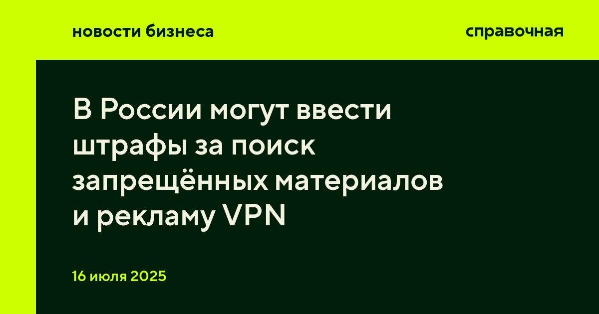 В России могут ввести штрафы за поиск запрещённых материалов и рекламу VPN В Госдуму внесли поправки в КоАП, которые вводят штрафы за поиск экстремистских материалов в интернете, в том числе с помощью VPN-сервисов, а также за рекламу этих сервисов, сообщает Forbes. С марта 2024 года в России действует запрет на рекламу и распространение информации о VPN-сервисах. Например, Роскомнадзор блокирует сайты с инструкциями по установке VPN или рассказывающие об обходе блокировок. Сами же VPN-сервисы, помогающие получить доступ к запрещённой информации, ограничивают с 2020 года. ➡️ В качестве поправок предлагается установить штрафы от 3 000 до 5 000 рублей для граждан за умышленный поиск в интернете экстремистских материалов, которые включены в специальный перечень, и получение доступа к ним с помощью VPN-сервисов. В списке экстремистских материалов на сайте Минюста сейчас 5 473 пункта — это книги, треки, видеоролики и другие информационные материалы, которые признаны экстремистскими по реш
