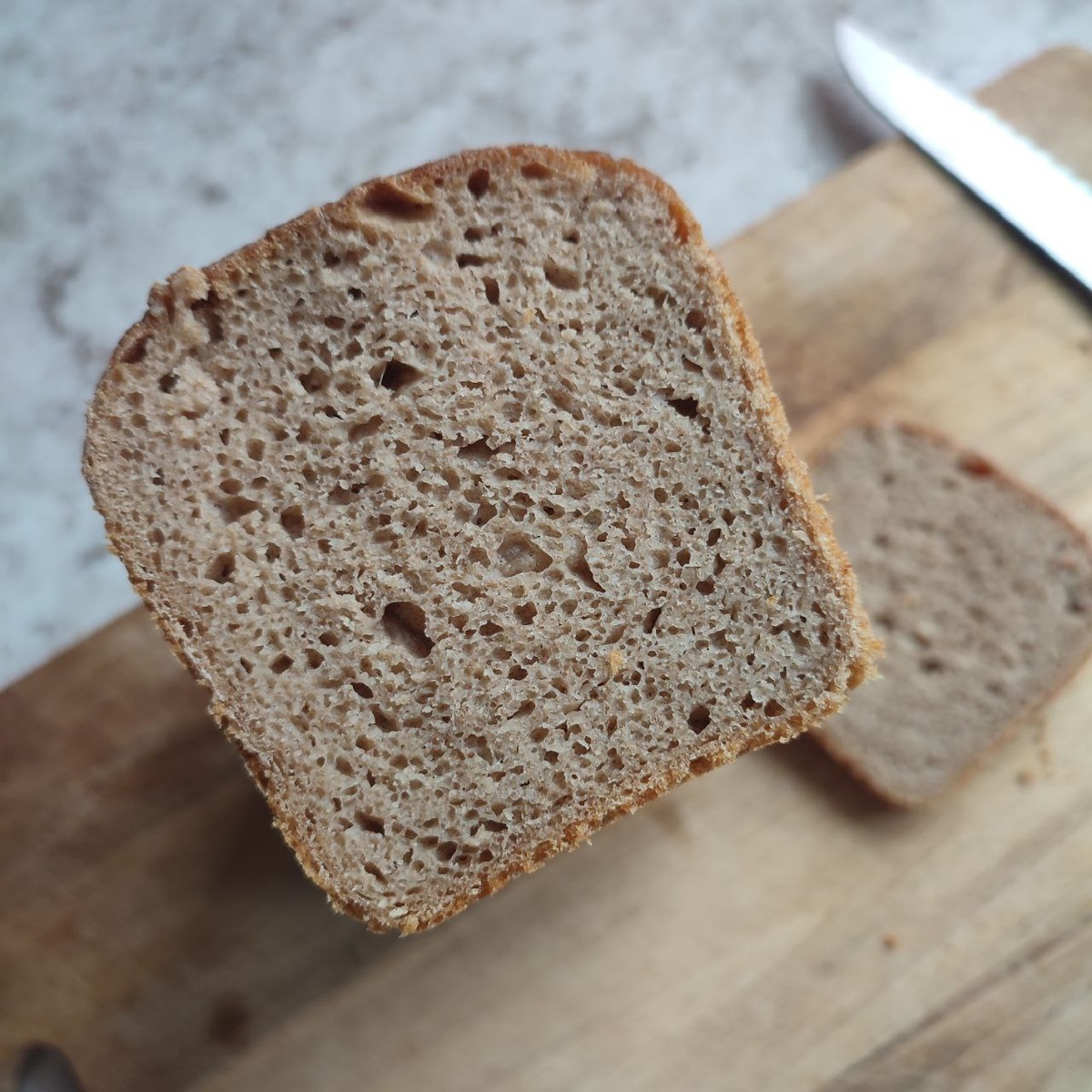 Не удержалась и отпилила край чуть теплого! На мой вкус идеально! Я применила хитрость и положила чуть больше нормы соли. Не перебродил! Привкус солоноватый, послевкусие сладкое! В этот раз формы смазывала сливочным маслом. Корочка пропиталась и это очень вкусно!