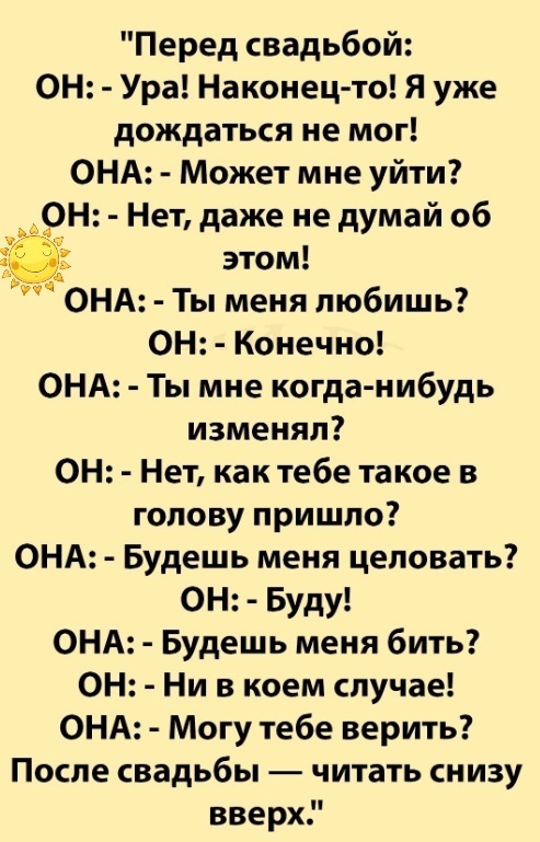 Предлагаю сделать небольшой перерыв в рутинной череде ежедневных забот и обязанностей, чтобы ненадолго переключиться и улучшить своё эмоциональное состояние. Ведь иногда полезно отвлекаться от суеты и повседневной нагрузки, позволяя себе расслабиться и получить заряд позитива через хорошее чувство юмора и искренний смех. Именно сейчас самое время устроить небольшую передышку, посмотреть забавную историю, послушать анекдот или поделиться веселым случаем с друзьями — ведь ничто так не поднимает настроение и не восстанавливает душевные силы, как здоровый и весёлый смех! Ночь перед Новым годом. Около пяти часов утра кто-то звонит в дверь. Никого не ожидая, всё равно решаюсь открыть. Передо мной — совершенно трезвый парень приятной внешности, одетый всего лишь в джинсы и белую рубашку. Пожелав мне наступившего Нового года, он задаёт неожиданный вопрос: — Извините, случайно не у вас ли я праздновал? — Думаю, нет. Парень тяжело вздыхает: — Может, хотя бы семью Мартыновых знаете? — Тоже вряд л