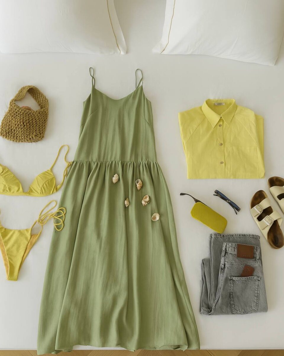 🏖 Настроение — отпуск 🌊 Когда мечты о море становятся всё ближе, самое время продумать свой гардероб для ярких путешествий. Мы подготовили для вас образы, которые легко сочетаются и сопровождают в любой отпускной момент. 1) платье макси + рубашка изо льна + джинсы c потертостями 2) рубашка в клетку + топ из хлопка + трикотажные джоггеры 3) юбка с оборкой + рубашка изо льна + джинсы широкие 4) платье изо льна + жилет однобортный + поло из хлопка 5) поло с коротким рукавом + шорты - бермуды собрать образ