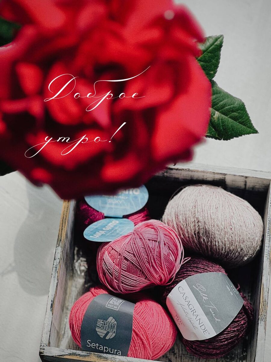 🌸 Доброе утро! Сегодня продолжаем праздничное настроение — ведь мы всё ещё отмечаем день рождения Жени, а значит, картинка дня будет с цветами! 💐 А ещё вчера мы уже стартовали вязать шёлковый топ… вы с нами? 🔴 Присоединяйтесь — самое время поймать летнее вдохновение!