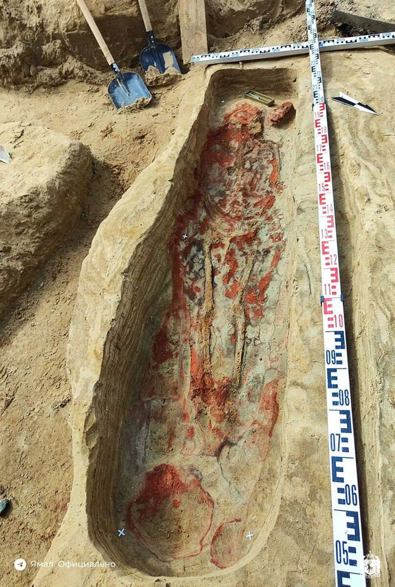 В Салехарде археологи раскопали уникальный могильник эпохи энеолита Учёные впервые обнаружили древнейшие медные изделия на севере Западной Сибири, причём на полярном круге. Находки сделаны в самом богатом могильном комплексе в регионе. Он включает более 15 погребений возрастом около 5000 лет. ⏺ Ритуалы захоронения весьма необычны: одних умерших завернули в бересту, других поместили в лодку. Ямы глубиной до двух метров копали ступенями, как обратный зиккурат, стены укрепляли досками и красили охрой. Сверху делали деревянный настил, умерших тоже покрывали охрой. Над захоронением насыпали курган, на него ставили перевёрнутый сосуд. На некоторых сооружениях видны следы огня. Есть предположение, что их поджигали, прежде чем окончательно закопать. ⏺ В погребениях найдены предметы для загробной жизни. Среди прочего — трапецевидная подвеска и фрагменты медной пластины – редкие и ценные украшения, указывающие на высокий статус их владельцев. ⏺ На раскопе работали археологи из Югры. В про