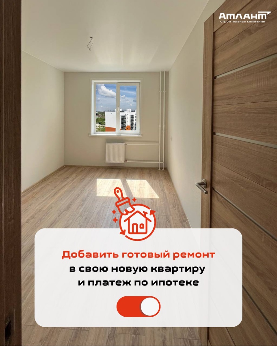 Добавьте готовый ремонт в свою квартиру и платеж по ипотеке 🧰 Остаются последние свободные квартиры в Квартале КЗКТ, в которые мы можем добавить готовый чистовой ремонт от «Атланта» и включить стоимость в ежемесячные платежи по ипотеке от 4,6% на весь срок. ⚠️ Мы доверяем чистовую отделку только одной надежной бригаде, поэтому количество квартир, которые они качественно и быстро могут подготовить, ограниченно. Стоимость ремонта в современных реалиях цен на строительные материалы ниже, чем если делать самостоятельно. Вы получите ключи от квартиры, в которую можно сразу заезжать и жить с комфортом. Никакой пыли, грязи,а главное ссор: какие обои выбрать и как лучше класть плитку 😅 В ремонт от «Атланта» входят: • входная и межкомнатные двери; • оконные откосы – сэндвич-панели; • розетки и выключатели; • унитаз, ванна, умывальник, смеситель; • натяжные потолки из пленки ПВХ; • обои в комнатах; • ламинат в комнате и на кухне; • керамическая плитка в санузлах; Звоните сейчас и узнайте