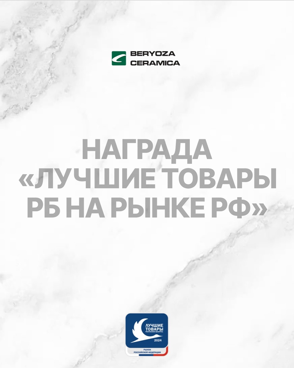Команда Beryoza Ceramica получила награду в конкурсе «Лучшие товары Республики Беларусь на рынке Российской Федерации»🔥