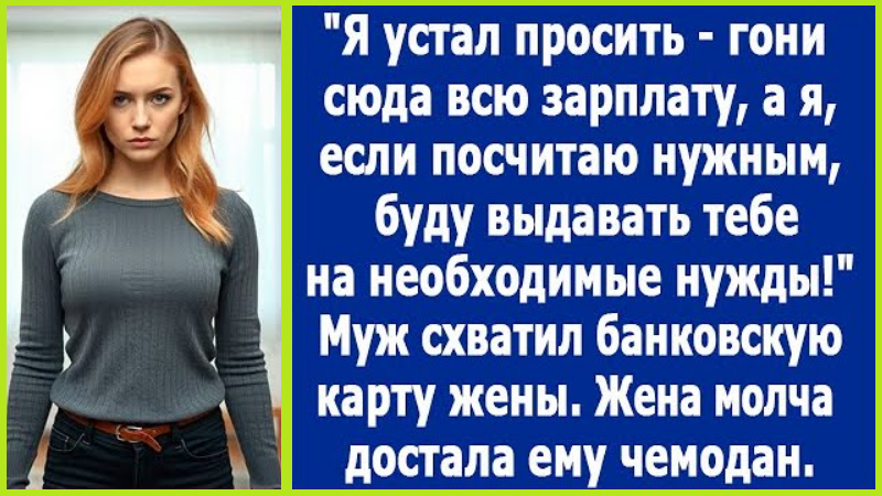 — Теперь твоя зарплата будет у меня, а я буду выдавать тебе деньги на необходимые нужды, — распорядился он. — Так мы наконец-то научимся эффективно распоряжаться бюджетом.