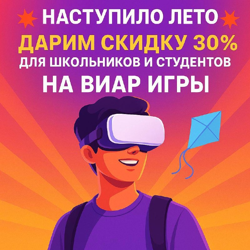 🎉 ЛЕТО — ВРЕМЯ ВИАР-ПРИКЛЮЧЕНИЙ! 🎉 ⠀ 🔥 СКИДКА 30% на все VR-игры для школьников и студентов! ⠀ 🟢 Как получить: — Просто предъяви школьный или студенческий билет перед игрой — И наслаждайся полным погружением со скидкой! ⠀ 🎮 Действует на всех наших аренах всё лето: 📍 Ленина 130/1, 3 этаж 📞 +7 909 521-05-76 ⠀ 📍 Ленинградский 28/1, 2 этаж 📞 +7 933 300-88-03 ⠀ 📍 Шахтёров 48А, 2 этаж 📞 +7 904 373-78-09