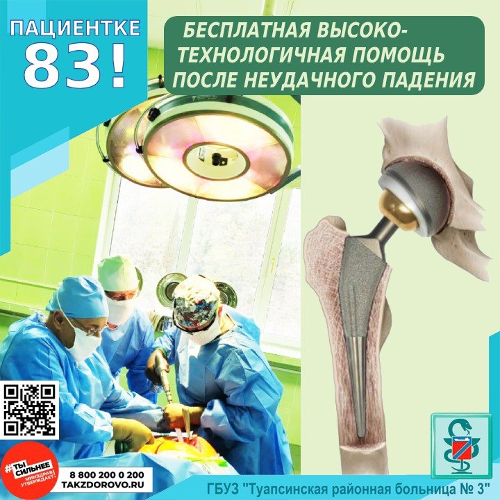 БЕСПЛАТНАЯ ВЫСОКОТЕХНОЛОГИЧНАЯ ПОМОЩЬ ПОСЛЕ НЕУДАЧНОГО ПАДЕНИЯ 07.07.2025 в стационар поступила 83 летняя пациентка с жалобами на боли в области левой ноги после падения. Женщина была экстренно обследована с постановкой диагноза "закрытый оскольчатый перелом левой бедренной кости со смещением отломков". Несмотря на обширный перечень сопутствующих заболеваний пациентке была успешно проведена операция – первичное тотальное эндопротезирование левого тазобедренного сустава. В послеоперационном периоде пациентка находилась в отделении анестезиологии и реанимации, где ей оказали высококвалифицированное послеоперационное сопровождение, а затем перевели в хирургическое отделение. Благодаря слаженной работе персонала травматологической службы, грамотного послеоперационного ведения, ранней реабилитации, корректировке и дальнейшем сопровождении сопутствующих патологий специалистами отделения терапии, пациентка в короткое время была активизирована, поставлена на ноги и на данный момент готови