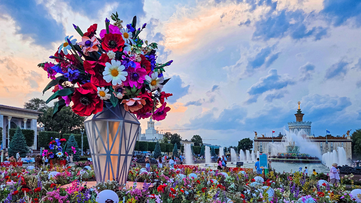 Вечером на ВДНХ проводят ландшафтное световое шоу. Вокруг вазы зажигают 70 сфер. Посмотреть на представление и отдохнуть можно на копиях исторических скамеек ВДНХ образца 1939 года, которые стоят по периметру композиции.