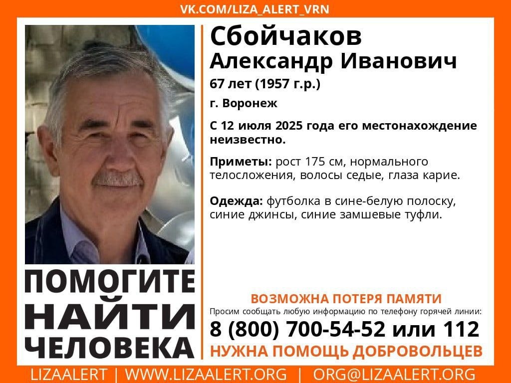 Внимание! Помогите найти человека! Пропал #Сбойчаков Александр Иванович, 67 лет г. #Воронеж С 12 июля 2025 года его местонахождение неизвестно. Инфорг: Миледи (Елена) 89103487479 Если вы обладаете какой-либо информацией о пропавшем, просьба позвонить по номеру телефона горячей линии отряда 88007005452 (бесплатно по РФ) или 112. ⚡️Подпишись на «Медиа-Х Воронеж»