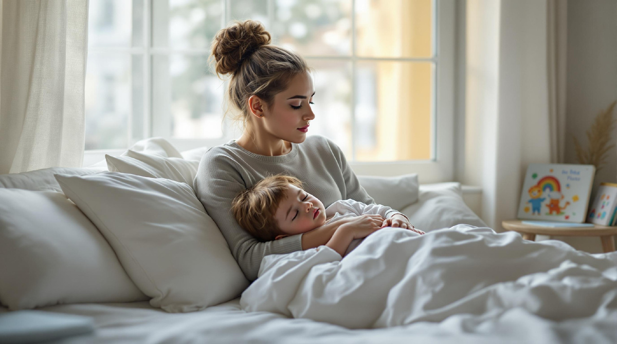Свекровь усмехнулась — коротко, без радости. Прошла в спальню, приложила ладонь ко лбу Пети. Движения точные, профессиональные. Мальчик заворочался, открыл глаза.