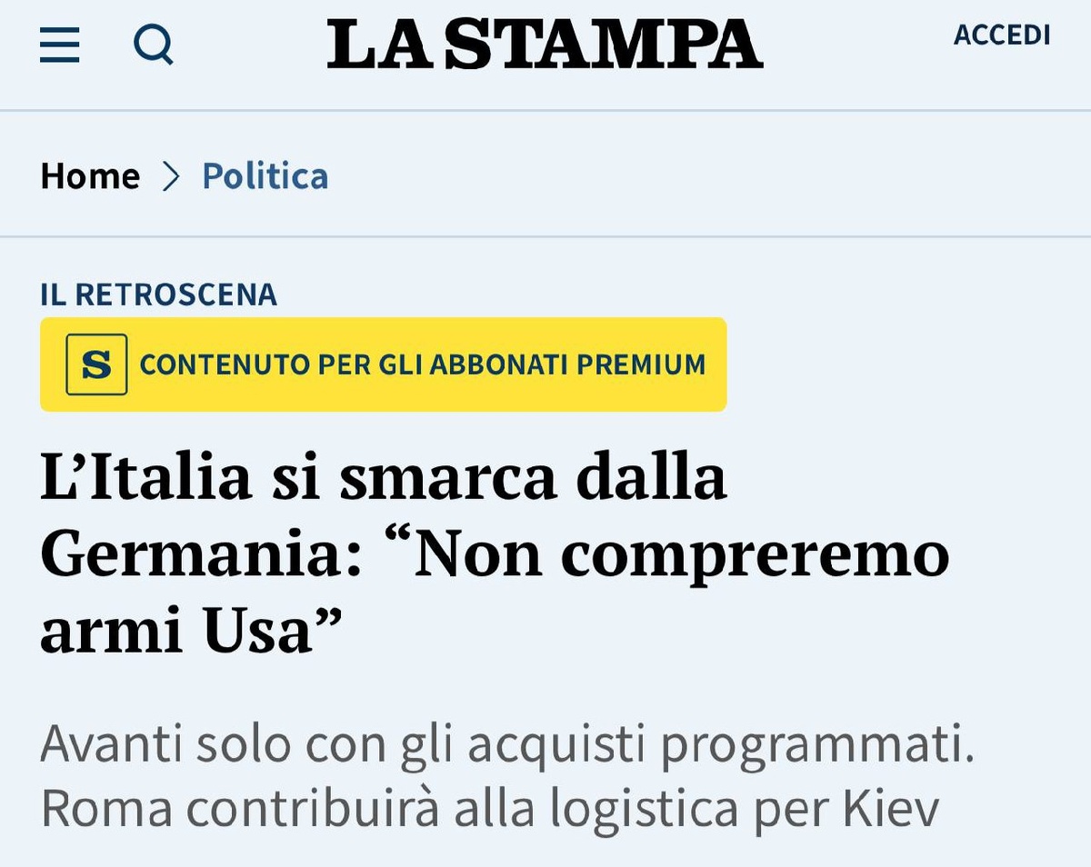Италия не будет участвовать в инициативе по закупке вооружений США для Украины, — газета Stampa. По данным газеты, у страны нет свободных для этого денег. Заря | Новости - Подписаться