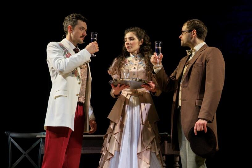 На фото слева направо г-н Сатанвиль (Андрей Душечкин), Жорж Дантен (Александр Полозков) и г-жа Сатанвиль (Виктория Ковальчик).
