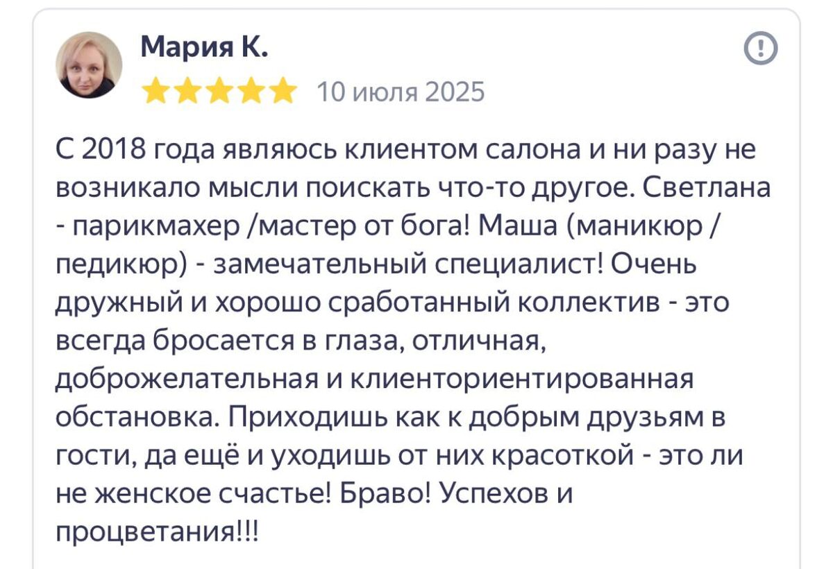 Делимся вашими чудесными отзывами — спасибо, что выбираете нас! 🥰 Каждое ваше тёплое слово вдохновляет нашу команду становиться ещё лучше. Мы благодарны за доверие, за то, что приходите к нам снова и снова, рекомендуете друзьям и делитесь впечатлениями. Ваши отзывы — наша лучшая мотивация и подтверждение того, что мы движемся в правильном направлении. Спасибо, что вы с нами! ❤️