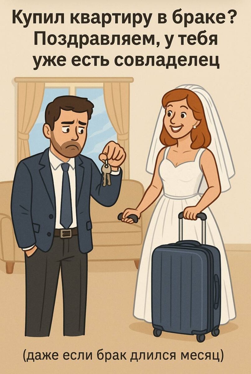 Если вы купили квартиру в браке — значит, по закону это общее имущество.