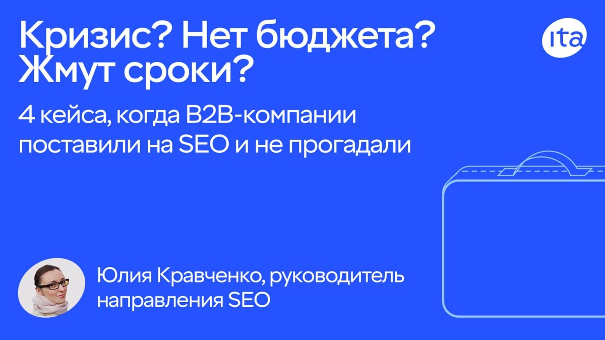 Кризис? Нет бюджета? Жмут сроки? 4 кейса, когда B2B-компании сделали ставку на SEO и не прогадали. Привет, это Юлия Кравченко, я руковожу направлением SEO в IT-Agency. В этой статье расскажу, как SEO помогает B2B компаниям достигать бизнес-целей — от привлечения лидов до сохранения потока в кризис.