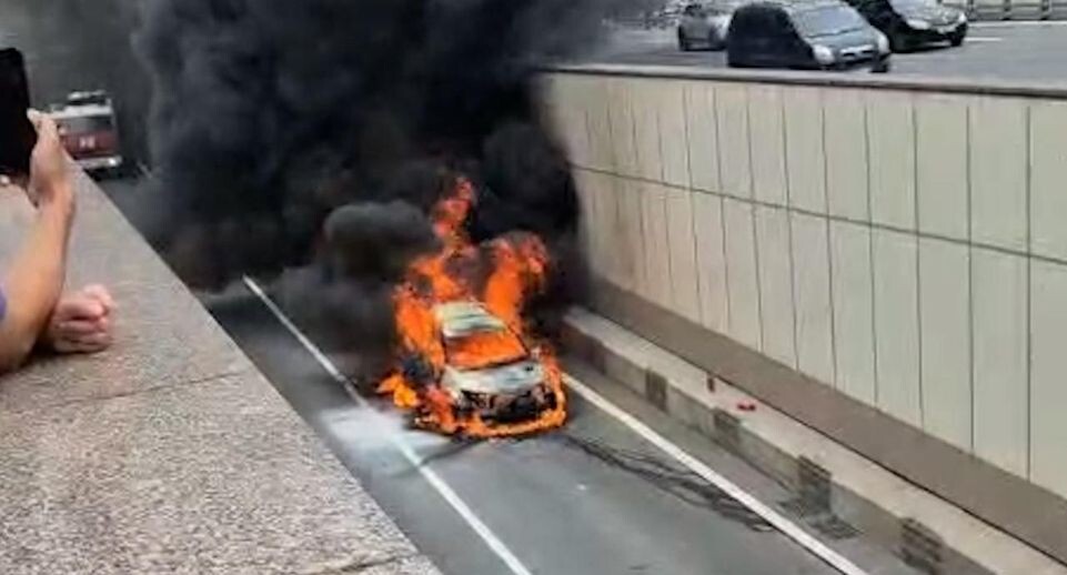 Появилось видео с горящей машиной на Звенигородском шоссе в Москве