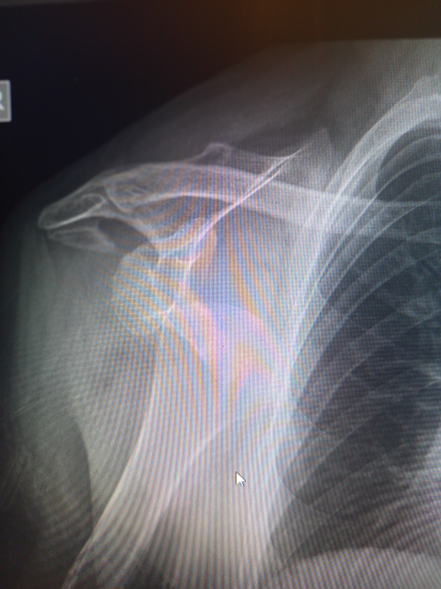 Ничего понять не можем, наши врачи еще снимок не описали, а травматологи ей ставят диагноз перелом бугра плечевого сустава.