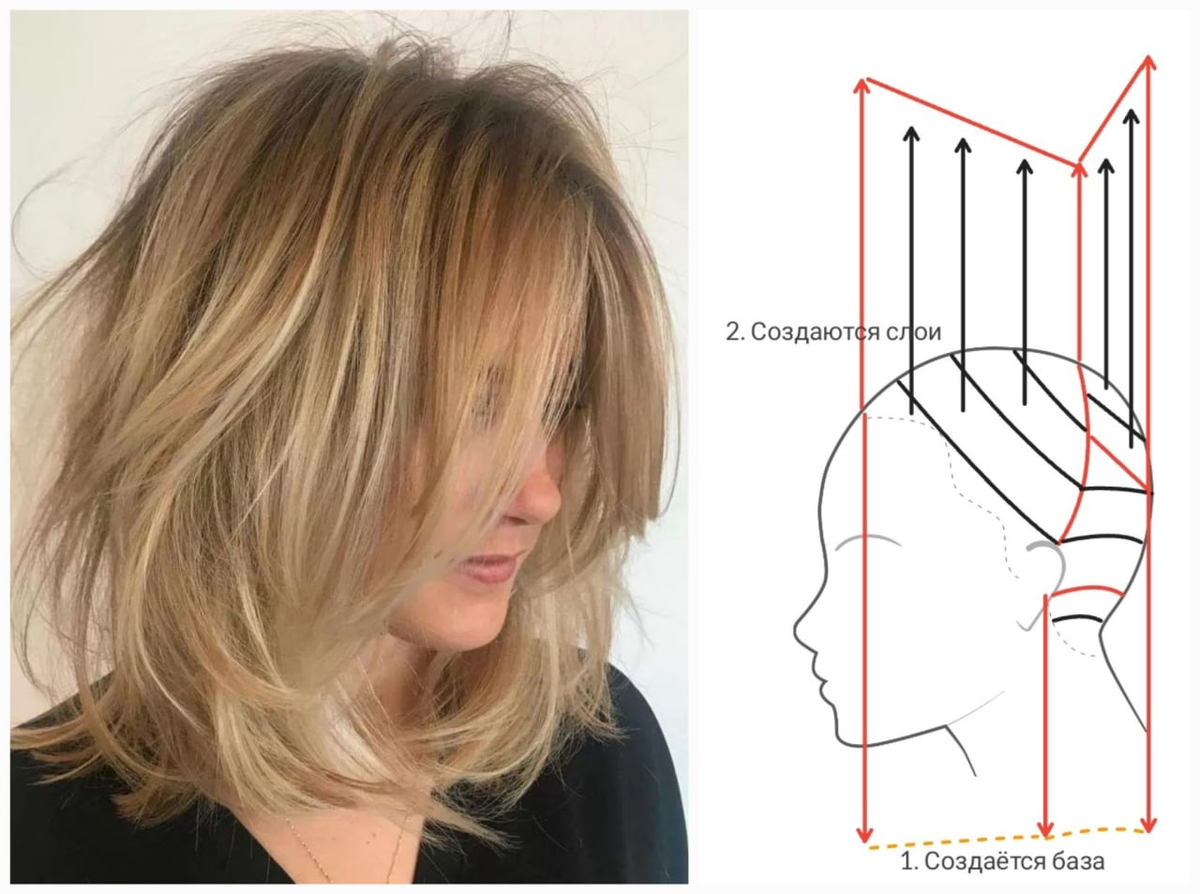Один из самых частых запросов от женщин: «Хочу объёмную стрижку, чтобы волосы лежали легко». На деле же — мастер делает либо скучное Каре, либо обычный Каскад, как в нулевых, либо прореживает по кончикам. А женщина уходит с ощущением, что объёма как не было, так и нет, а волосы теперь ещё и не держат форму. И вот здесь идеально заходит та самая стрижка, которую на Западе называют long layered bob, а у нас чаще — удлинённый многослойный Боб. На фото как раз она. Слои по всей голове, удлинение к лицу, и база, которая даёт чёткую линию, не давая прическе «рассыпаться». 🟢 ЧЕМ УЛОЖИТЬ ТАКУЮ СТРИЖКУ ЗДЕСЬ Что важно: объём в такой стрижке достигается не филировкой и не "пушком", а оттяжкой вверх при стрижке вертикальных секций. Слои поднимаются с макушки, создавая плотную массу на затылке. Это очень важно для женщин с тонкими волосами — когда длина вроде есть, а весь объём у корней сразу оседает. Благодаря такой оттяжке и слоистой структуре стрижка держит форму даже без сильной укладки, прос