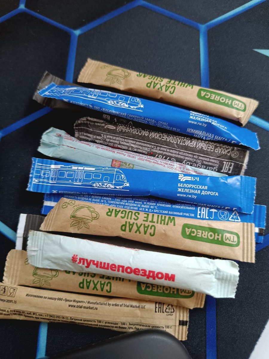 Вот новые пакетики мне привез коллега. Также периодически муж привозит мне новые пакетики. Родители тоже, зная мою страсть, сахар мне берут.