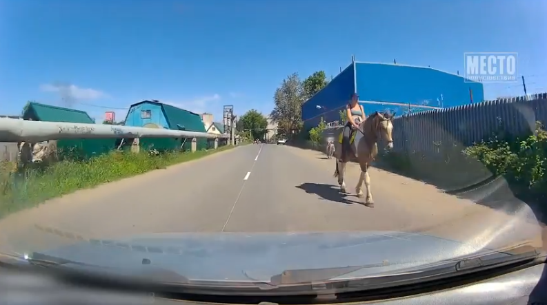 ...Повстречалась автору видео на улице Сормовской. По правилам, всадники должны двигаться по своей полосе на расстоянии не более 1 метра от края дороги. А наездница на лошади, как и юная девочка на пони, двигались по встречке. Спасибо, что не по центру дороги.