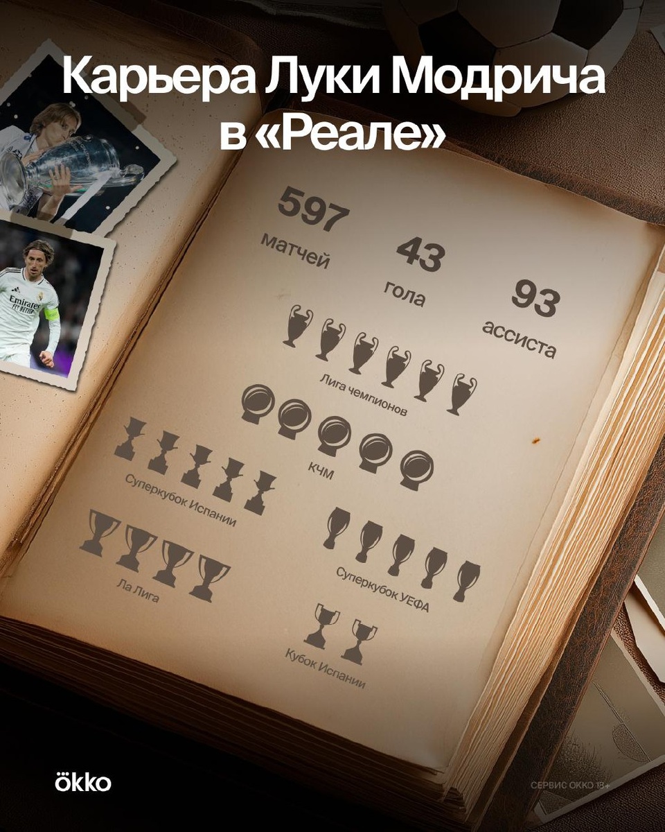 Вспоминаем лучшие моменты Модрича в «Реале». Это уже история 📖 Неудачный старт, ассист на Рамоса, 6 ЛЧ, «Золотой мяч». Его карьера в Мадриде достойна экранизации ❤️