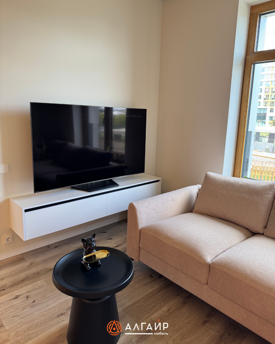 Взгляните, как мы преобразили это пространство: стиль, комфорт и функциональность — в каждом элементе. ⠀ ☑️ Функциональная ТВ-зона: лаконичная подвесная тумба с идеальными пропорциями и скрытой системой хранения — никакого визуального шума, только чистый дизайн. ⠀ ☑️ Мягкая зона отдыха: диван идеально сочетается с общим стилем интерьера, а пространство наполнено светом благодаря панорамным окнам. ⠀ ☑️ Шкаф-витрина с открытыми полками — для хранения дипломов, грамот, детских рисунков и памятных наград. ☑️ Компактный круглый стол для семейных встреч и уютных чаепитий. ☑️ Интегрированная подсветка под потолком добавляет глубины и уюта в интерьер. ⠀ Хотите такую же гостиную или проект под ваш стиль? 📲 Напишите нам — обсудим идеи и начнём создавать ваш идеальный интерьер уже сегодня!