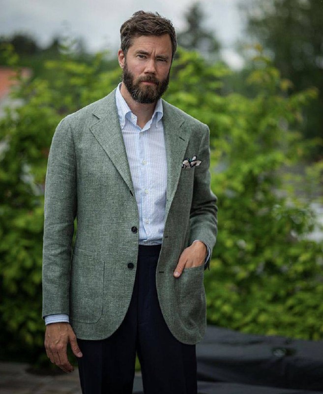 Образ 1 Зелёный льняной пиджак, рубашка в полоску, тёмные брюки. Лёгкость и статус без лишней строгости. Образ 2 Синий пиджак, оливковая рубашка, льняные брюки с высокой посадкой. Безупречно, если утро начинается с джаза и решений. Образ 3 Песочный пиджак, голубая рубашка, брюки в тон. Минимум усилий — максимум изящества. Что Вам ближе строгость и темные тона? или легкость - свежесть и светлые оттенки?