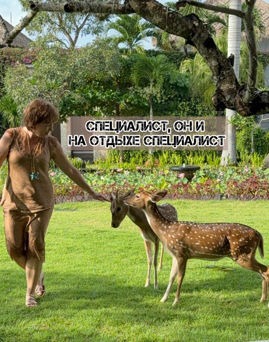 Ловили себя на мысли, что трудно выключить этот внутренний коррекционный тайминг? Или вот ещё - приходилось вам слышать по отношению коллег или себя самой «пять минут посмотрела и уже диагноз готов». Диагноз ни диагноз, а проблему, нездоровье, несоответствие норме, конечно, специалист видит. Пост написала на Бали, но вот как раз по теме пришелся. В отеле, кроме нас, ещё была российская пара. С маленьким сыном. Лет трёх или трёх с половиной. Но сначала я услышала голос - где-то невдалеке специфическую высоту, с такой характерной и хорошо мне знакомой особенностью, но ребёнка первое время я не видела. Голос и крики на территории я слышала то тут, то там. Потом на завтраке мы пересеклись. Внешне малыш как малыш. Красивый. Взрослые поприветствовали друг друга на родном языке. Я спросила, обращаясь к мальчику: «Как тебя зовут?» Ответила мама: «Он стесняется»… Отель придумал очень интересный аттракцион - вовремя завтрака на лужайку служители выводили двух маленьких оленят. Их можно бы