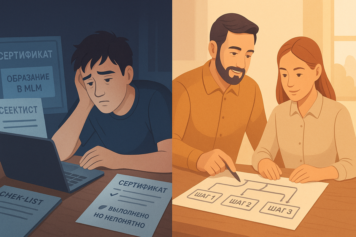 📌 Подписывайся на телеграм-канал Многие сетевики в начале пути «берут курс» — смотрят уроки, читают инструкции, скачивают PDF. Но проходит неделя — и… ничего. Нет действий, нет результатов. Только внутреннее напряжение и нарастающее чувство вины. Почему? Потому что курсы — это информация. А внедрение требует поддержки. Именно здесь вступает в игру настоящая сила MLM — наставник. Обучение без сопровождения — это иллюзия движения. Ты как будто работаешь, но результата нет. Почему? Как итог — усталость, выгорание и ощущение, что «это просто не моё». Хотя проблема не в тебе. А в формате. Настоящее внедрение не происходит из видео. Оно рождается в действии — под руководством того, кто уже проходил этот путь. Наставник — не учитель и не тренер. Это партнёр по внедрению. Он: Наставник не просто даёт знания. Он делает так, чтобы ты начал применять. Это ключевая разница между «курсовщиком» и ментором. 📌 Подписывайся на телеграм-канал 1. Ты много учишься, но не внедряешь.