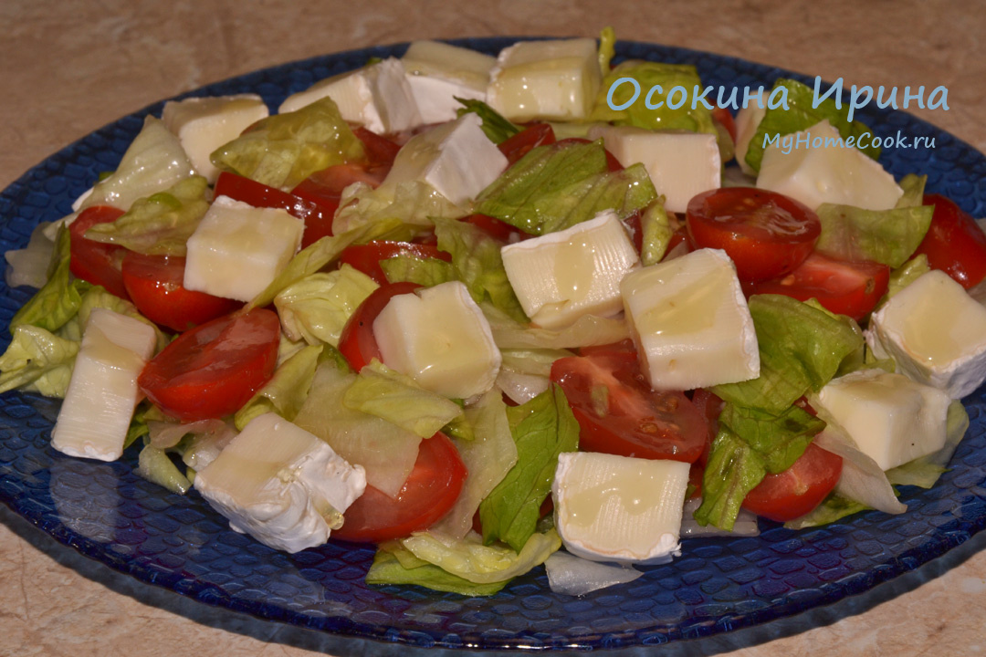 Летом долго стоять на кухне не хочется, как и есть что-то "тяжёлое", поэтому всё не заморочно: порезала произвольно 1/4 кочанчика салата "Айсберг" и сложила в миску, добавила большую горсть резаных помидорок черри, присолила, поперчила, сбрызнула оливковым маслом и промешала, затем разложила салат по тарелкам, поверх разложила произвольно кубики сыра "Бри" и сбрызнула жидким мёдом, а затем сразу подала. Просто, быстро, но так вкусно)