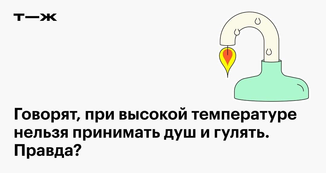 Жаловаться на жизнь — можно. Сальто... лучше не стоит. Инвестировать... подождите хотя бы до 37 °С. Рынок-то перегрет. А мыться и гулять, вопреки популярному мнению, тоже можно, если у вас есть силы. В статье — как лучше принимать душ при температуре и чем заменить прогулки, если слишком плохо себя чувствуете: https://t-j.ru/z-tg/high-temperature-dangerous #проверяем_слухи