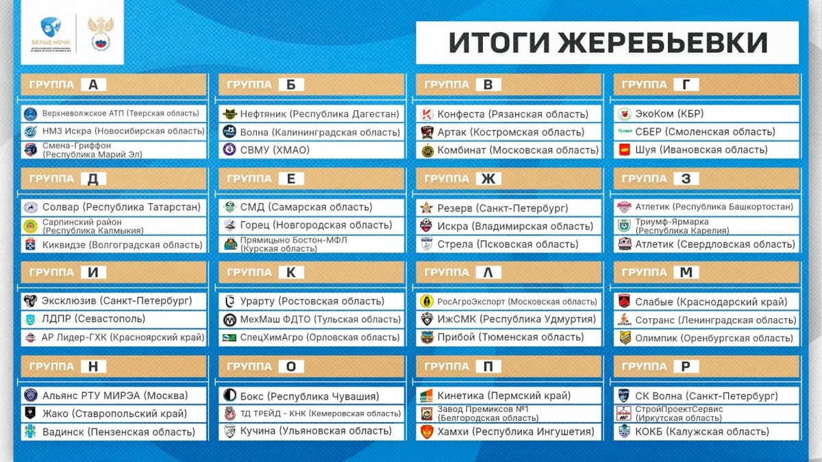 В ответ на пост 🪙 Состоялась жеребьёвка всероссийских соревнований по мини-футболу 6x6 «Белые ночи», где участвует псковская «Стрела» Псковичи сыграют в группе «Ж» с петербургским «Резервом» и «Искрой» из Владимирской области. Напомним, что все коллективы, коих на этом турнире 48, распределены по 16 группам. Победители групп напрямую выйдут в 1/16 финала, а команды, занявшие вторые и третьи места, сыграют стыковые матчи за выход в плей-офф. Игры начнутся 18 июля.