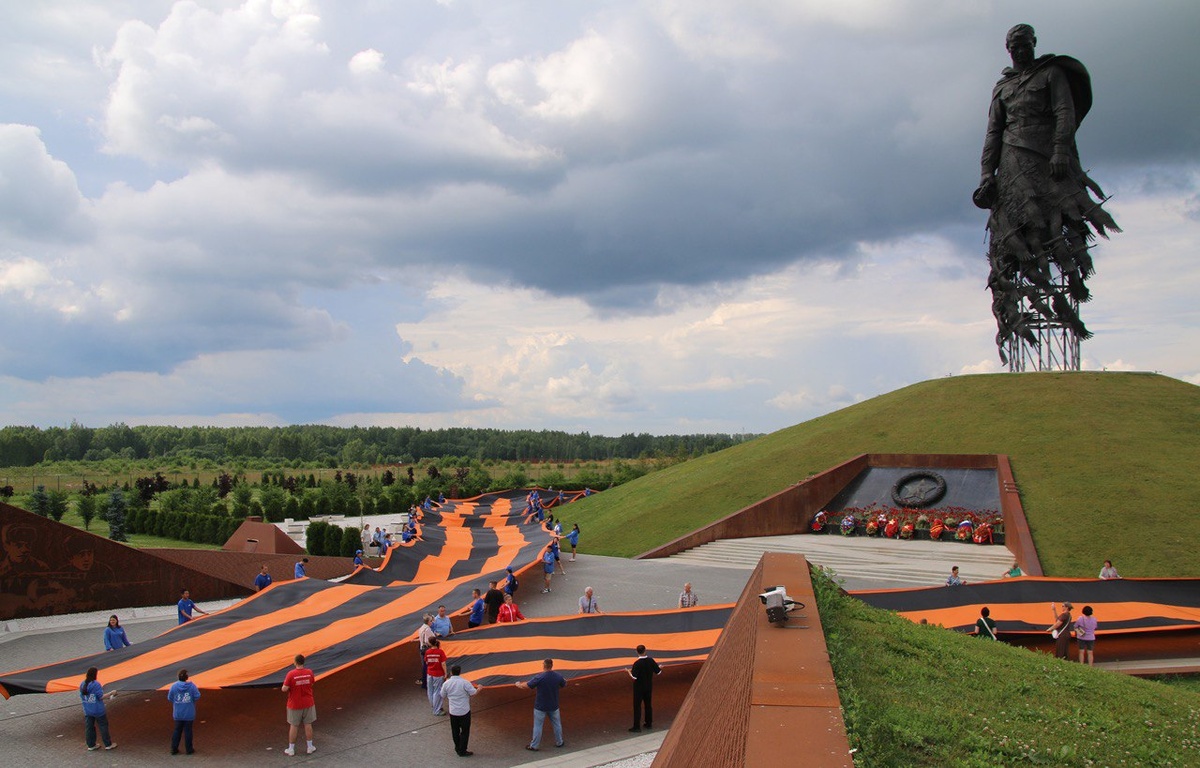 В Тверской области у Ржевского мемориала Советскому солдату развернули Георгиевскую ленту длиной 300 и шириной 7 метров