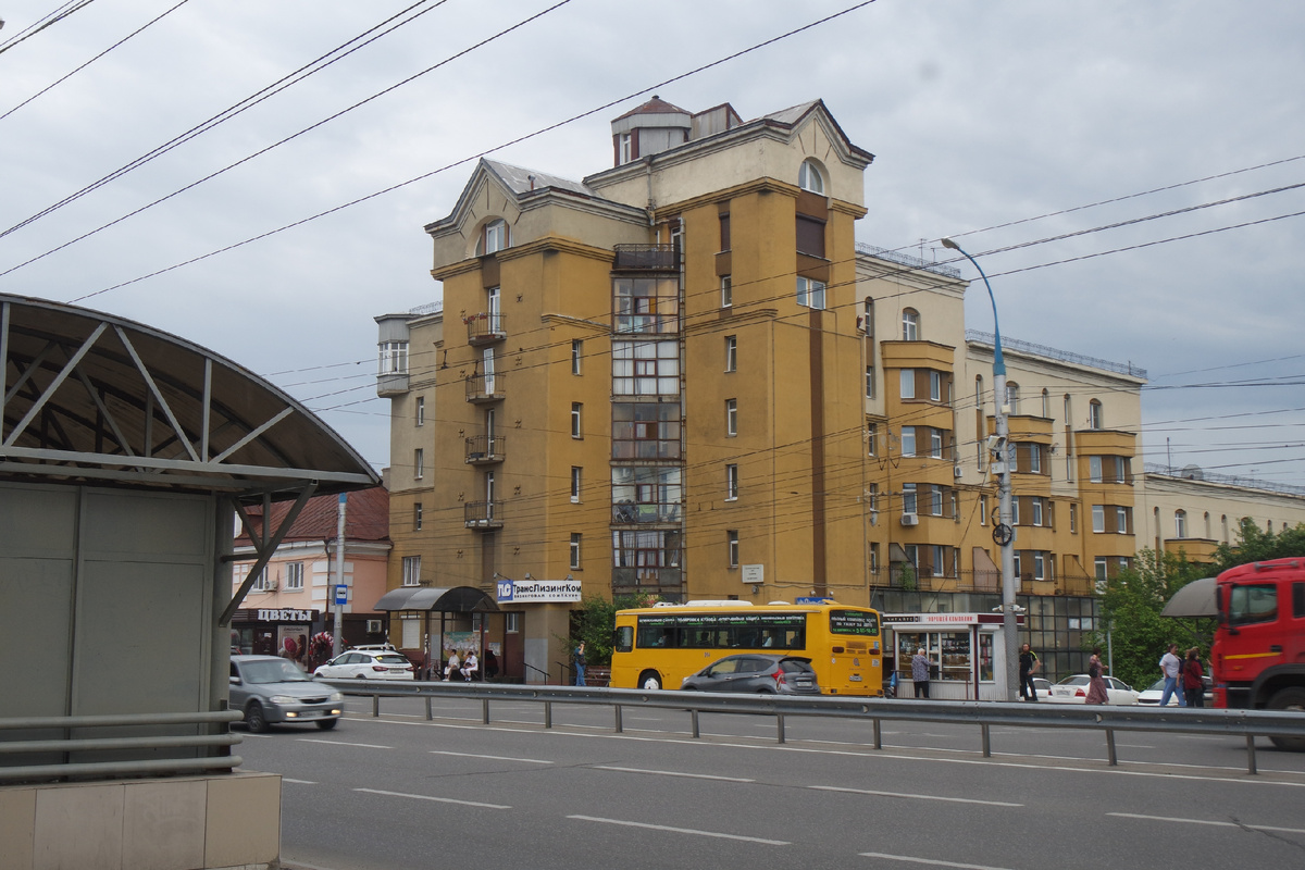 С нашей стороны жилой дом, который я как-то быстро пролетела, а затормозила только возле техникума экономики и права: