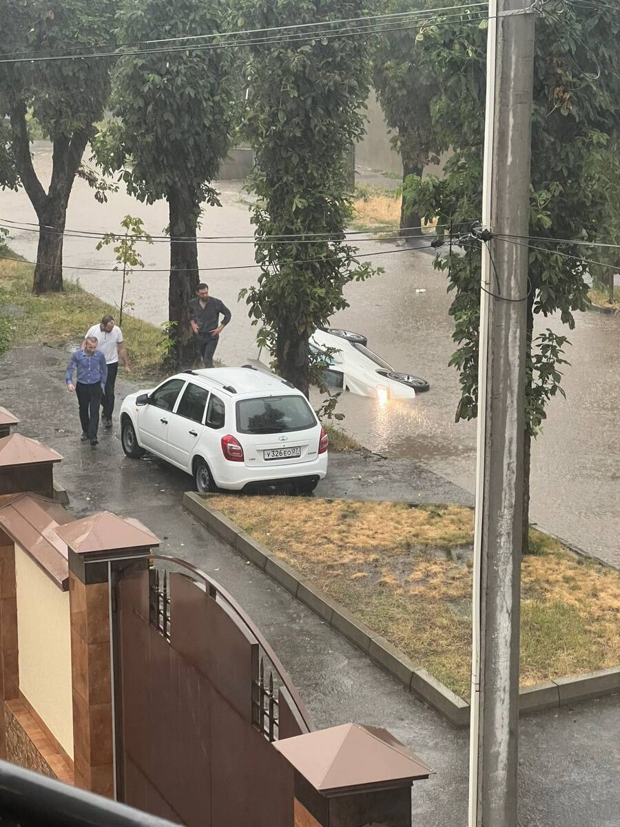 В Нальчике машины уходят под воду — в городе прошёл сильнейший ливень. Стихия валит деревья, топит улицы и скрывает дороги под водой. Транспорт проваливается в ямы и медленно тонет, а водители безуспешно пытаются вытащить их самостоятельно. Пострадавших на данный нет, сообщили в региональном МЧС. Заря | Новости - Подписаться