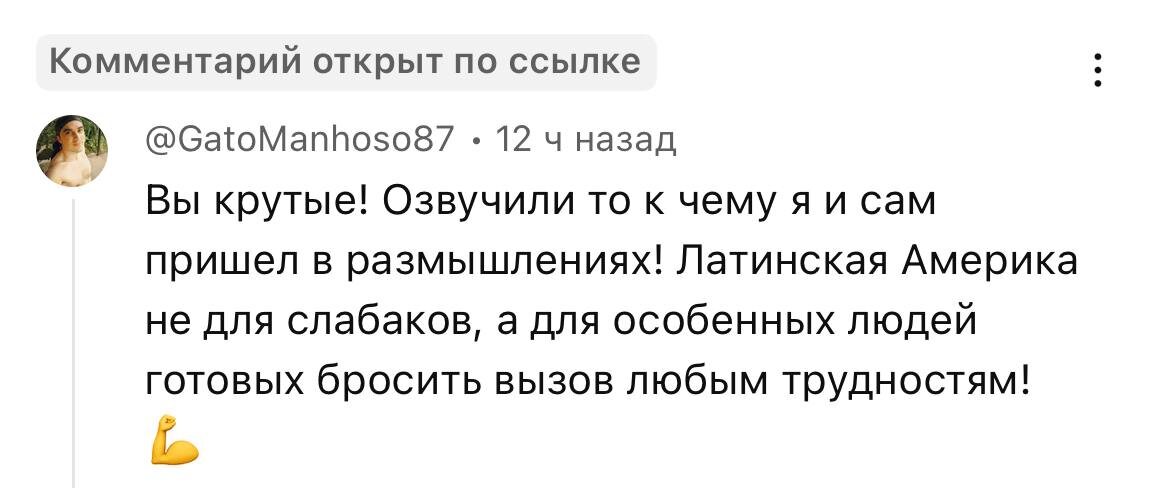 Латинская Америка не для слабаков. А для особенных людей, готовых бросить вызов трудностям! Такой шикарный комментарий мы получили - и полностью с ним согласны. Существуют куда более очевидные места для переезда, более привычные и понятные. Если хотите моря и солнца, беззаботной жизни - вы едете в Азию. Кайфуете от архитектуры и обожаете цивилизацию - Европа. Беспокоитесь за безопасность и привыкли забывать мобильник в кафе на столике - Дубай или Сингапур. Хотите увидеть, какой могла бы стать Россия, если бы пошла не по сырьевому пути развития - летим в Китай. Обожаете «всё включено» - помчали в Турцию или Египет. Ну а кому посчастливилось побывать в США - получают всё и сразу. А Латинская Америка - неочевидна. Она далеко. Она кажется опасной, отсталой и неразвитой. Вот только если вы рискнули и всё же прилетели, если смогли побороть в себе навязанные страхи и предубеждения - вы получите гораздо больше, чем вам кажется. Никакое море не сравнится по красоте с Карибским. После «всё