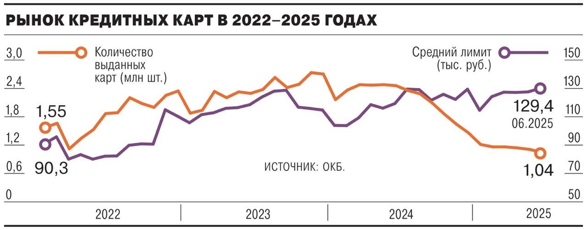 Выдача кредитных карт снижается уже год В отличие от потребкредитов, сегмент кредитных карт не демонстрирует восстановления: их выдача снижается в количественном выражении уже 12 месяцев подряд, а в денежном — последние восемь. На этом фоне средний лимит по карте, оформленной в июне, достиг рекордного уровня. За первое полугодие 2025 года было выдано 6,76 млн кредитных карт с общим лимитом 840,49 млрд рублей. Это на 52% меньше по числу карт и на 47% — по объему лимитов по сравнению с аналогичным периодом 2024 года. Тем не менее, некоторые банки уже отмечают оживление интереса со стороны клиентов, а аналитики прогнозируют восстановление сегмента в ближайшее время. #кредитныекарты #финансы #банки #экономика #кредитование #аналитика