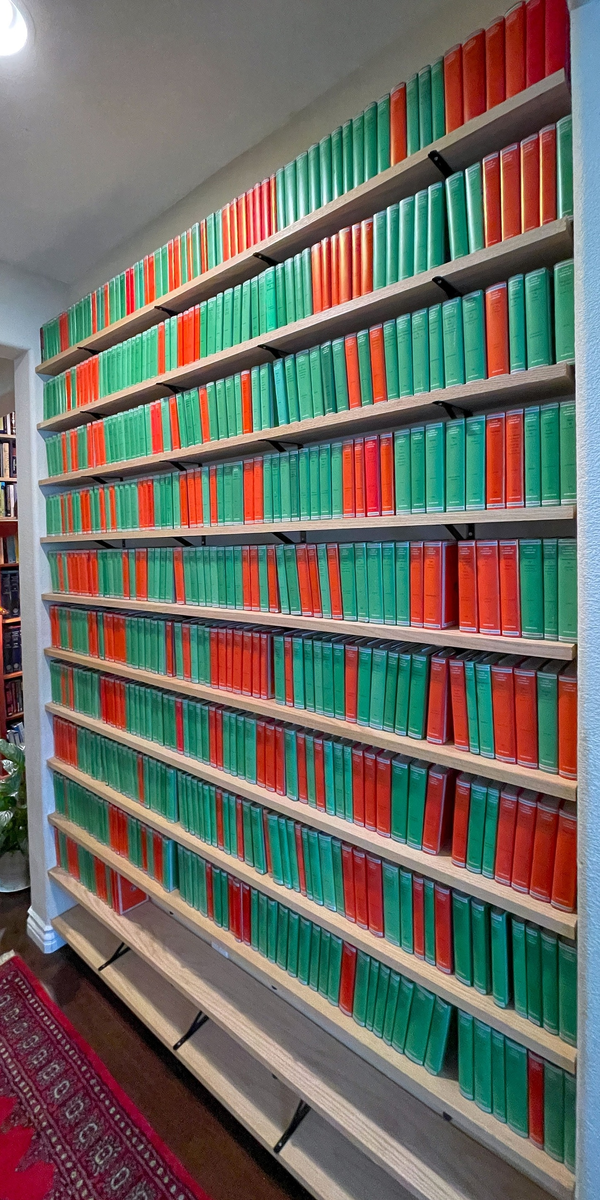 ...а остальным вслед за мной пришло время узнать, что в кадре — большая редкость: полный комплект Loeb Classical Library (LCL), Классической библиотеки Лёба. Зелёные корешки у трудов на древнегреческом языке, красные — у трудов на латыни. Книги расставлены не по цветам, а по хронологии выхода из печати. LCL знакомит читателей с наиболее значительными текстами далёкого прошлого, которые лежат в основе современной цивилизации и культуры. Библиотека получила имя своего создателя. Американец Джеймс Лёб (1867-1933) увлекался эллинистикой и окончил Гарвардский университет. Несмотря на диплом филолога-классициста, он не мог ни преподавать в Гарварде, ни вести там научную работу: евреям эти пути были закрыты. Поэтому вместо исследований античности Лёб занялся семейным делом и сперва работал у отца-банкира, а став постарше и набравшись опы