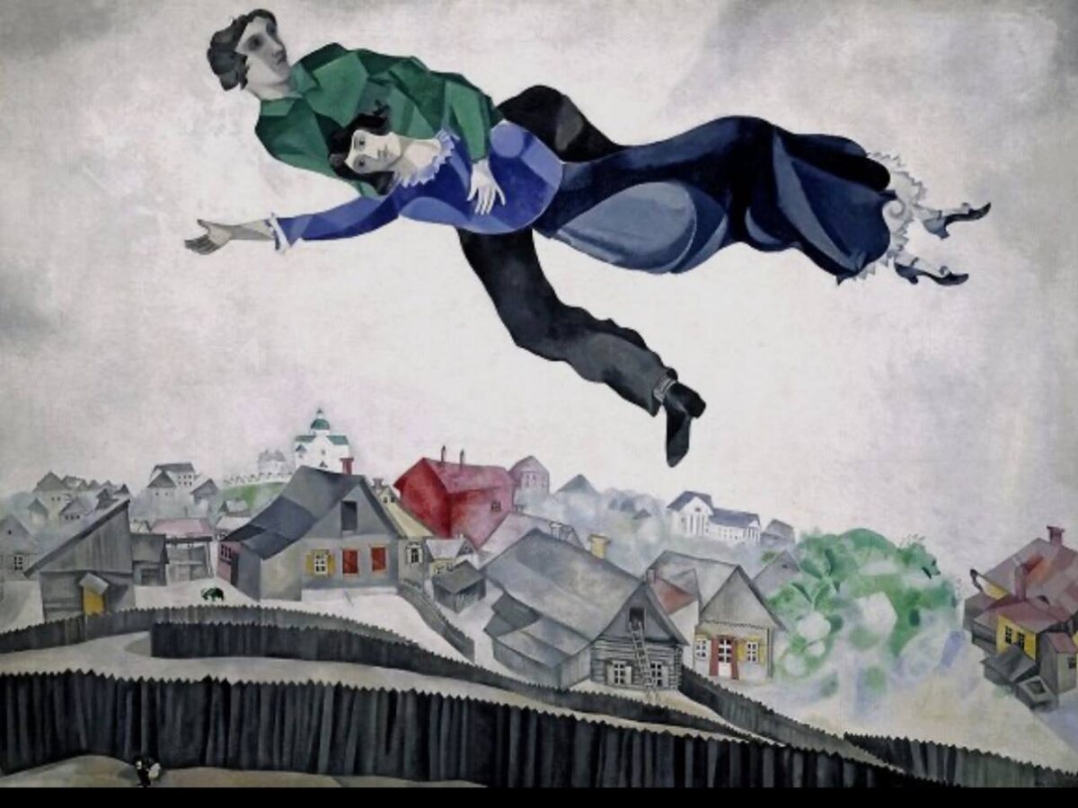 Шагал. Полёт длиной в любовь Когда смотришь на картину «Над городом», где Марк и Белла парят над Витебском, легко принять это за сказку, фантазию, сюрреализм. Но за образом — правда. Только выраженная в чувстве. Говорят, однажды зимой они гуляли по заснеженному Витебску. И будто бы в какой-то момент Марк посмотрел на Беллу — и ощутил: они уже не идут, а летят. Не физически, конечно. А как это бывает, когда счастье становится легче гравитации. Может быть, именно это ощущение он и перенёс на холст: их двоих — влюблённых, парящих, как облака, над родным городом. Без натурализма, только чувства, вытянутые в полёт. «Я не искал реальность — я искал любовь. А реальность сама подтянулась». Иногда достаточно одного настоящего чувства, чтобы взлететь над землёй — и написать вечность.