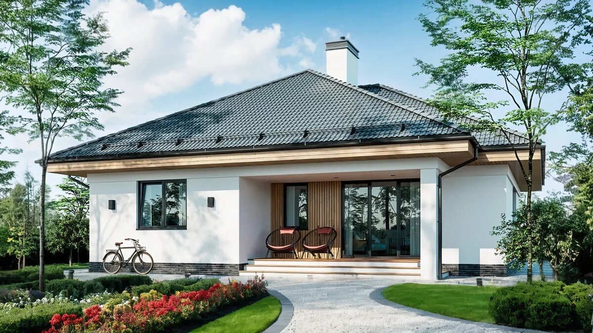 Современный одноэтажный дом, в архитектуру которого мы заложили две основные концепции: функциональность и гармонию с окружающей средой. Несмотря на относительно небольшую площадь здесь может с комфортом жить семья из 5-6 человек. Общая зона (кухня, гостиная, столовая) большая, светлая и имеет остекление на две стороны. О ПЛАНИРОВКЕ ⠀Функционально дом поделен на 2 зоны: общую и приватную 🔹По левую сторону от входа располагается зона кухни-столовой-гостиной. Отсюда напрямую можно выйти на просторную крытую террасу. 🔹В правой части дома спланированы 3 спальни и 2 санузла. Ближе к центру дома находится котельная. Детали этого проекта, описание планировочных решений и больше фото смотрите на нашем сайте. 🏠Если дом вам понравился и вы хотите построить такой на своем участке, пишите нам или звоните: +7(495) 234-01-11 ️Или оставляйте заявку здесь. ⠀ХАРАКТЕРИСТИКИ ПРОЕКТА 🔹Площадь дома: 136 м2 🔹Количество спален: 3 🔹Количество санузлов: 2