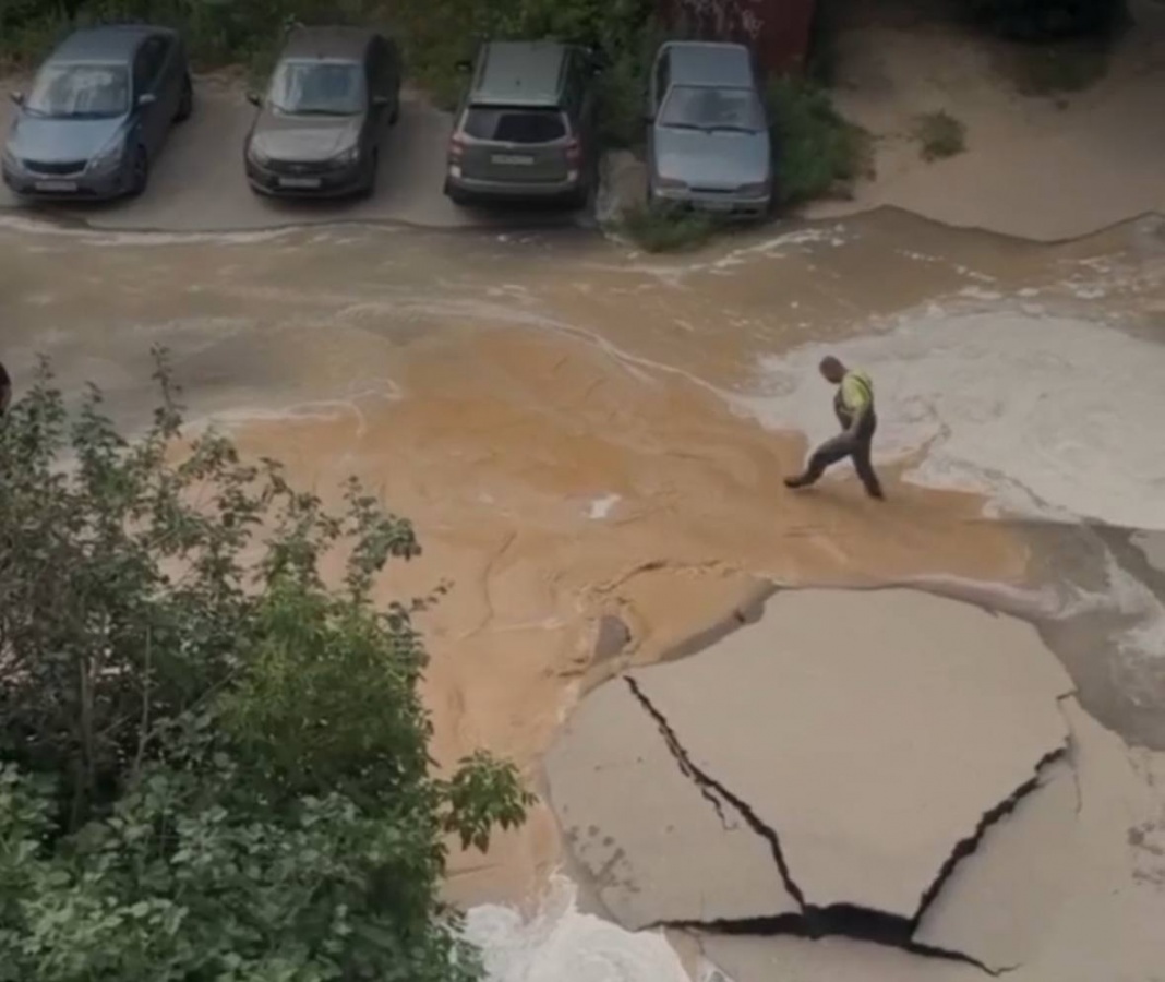 Мощный напор воды проломил асфальт во дворе рядом с домом № 3 по улице Строителей в Дзержинске. Об этом у себя в Telegram-канале рассказал местный блогер Алексей Алексеев.
