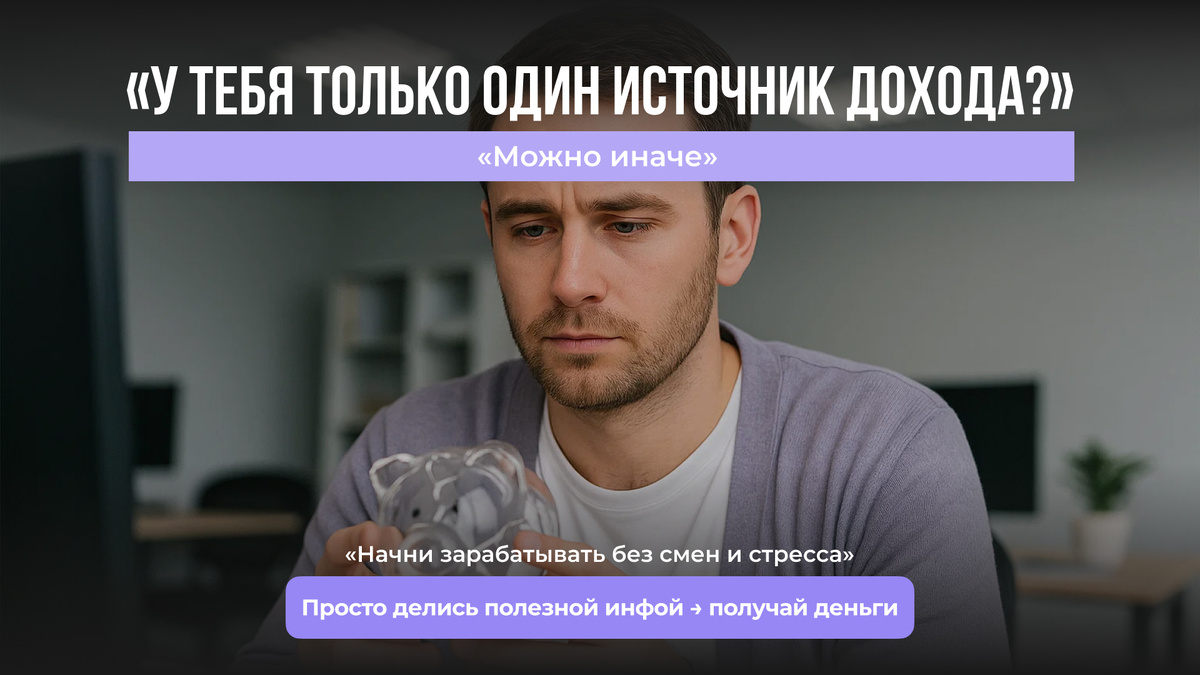 Сколько у тебя сейчас источников дохода? Один? А если он исчезнет — ты в безопасности? Сотни людей сегодня ищут подработку, берут смены, фриланс, «авито-подработки»… Но всё это — в обмен на время и нервы. А можно иначе. Можно просто делиться полезной информацией — и зарабатывать на этом.