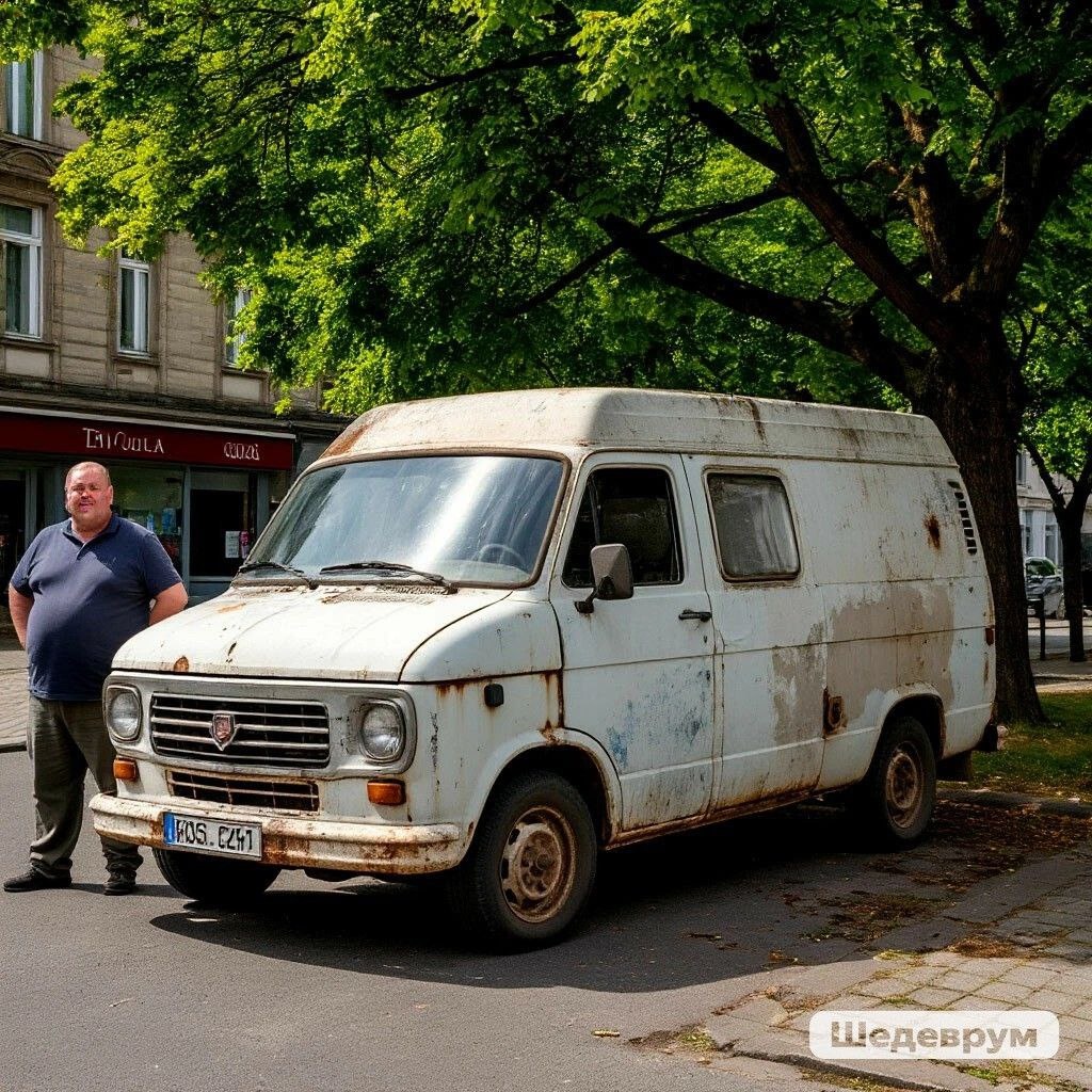 Да, да, да! Он действительно стоял на том же месте — в тени больших деревьев прямо напротив городской ратуши. Тот самый белый фургон — пыльный, облезлый, потрёпанный жизнью и дорогами.