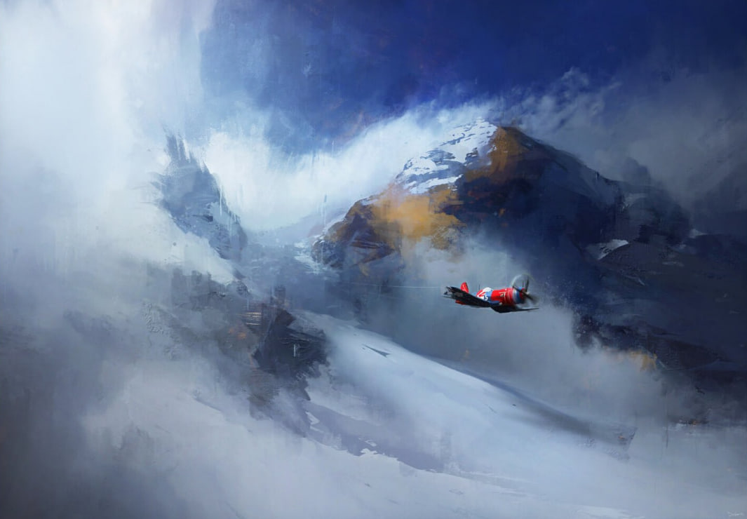 Картина изображает одинокий красный военный истребитель, проносящийся сквозь холодные горные туманы. В центре композиции — мощные снежные пики, затянутые облаками и дымкой, создающие ощущение суровости и опасности. Художник мастерски передаёт динамику полёта, усиливая её резким контрастом между спокойствием заснеженного пейзажа и агрессивным вхождением самолёта в пространство холста. Живопись отличается экспрессивной манерой письма, размытыми мазками и насыщенными синими и белыми тонами, передающими величие и холод природы. Работа вызывает чувства изоляции, риска и преодоления — как символика одиночного движения сквозь непредсказуемый мир. Стили: Импрессионизм, экспрессионизм, сюрреализм, дигитальная живопись, концептуальный реализм, атмосферный пейзаж. Автор работы: Томас Дюбуа, Франция Картина «САМОЛЁТ» Здесь вы можете наслаждаться картинами современных цифровых художников, которых нет в масс-маркете, и которые можно купить на холсте или бумаге 🤍