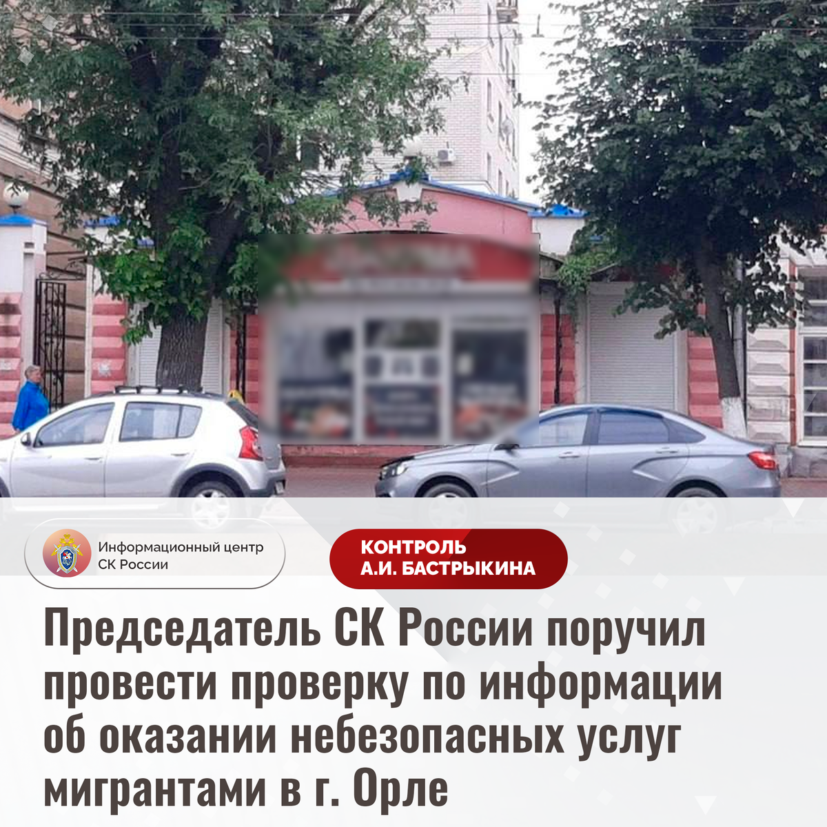 Председатель СК России поручил провести проверку по информации об оказании небезопасных услуг мигрантами в г. Орле В сети Интернет сообщается, что в трех точках общественного питания в городе Орле мигранты, не имеющие санитарных книжек и иной разрешительной документации, осуществляли реализацию продуктов питания с истекшим сроком годности. Председатель Следственного комитета Российской Федерации Александр Иванович Бастрыкин поручил и.о. руководителя СУ СК России по Орловской области Константину Владимировичу Баранову провести процессуальную проверку и представить доклад об установленных в ходе первоначальных проверочных мероприятий обстоятельствах, а по завершении проверки – о ее результатах. Исполнение поручения, а также ход процессуальной проверки поставлены на контроль в центральном аппарате ведомства. #СледственныйКомитет #СКРоссии #СК #ИЦСКР #ИнформационныйЦентр #АлександрБастрыкин #ПредседательСКР #КонтрольПредседателяСКР #КомментарийКонтроль #ОрловскаяОбласть